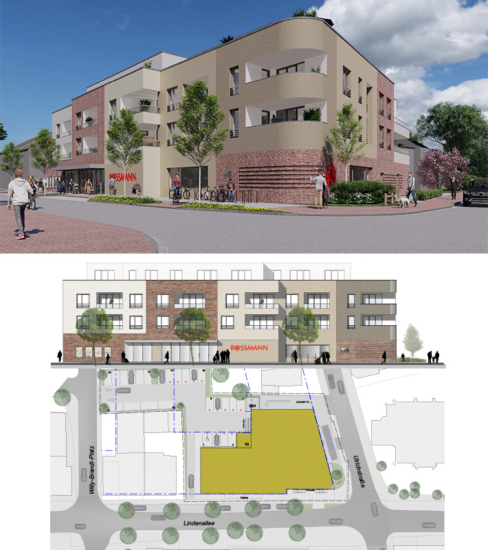 | Bauzeit | ca. 12 Monate Eröffnung Rossmann voraussichtlich Sommer 2025 |